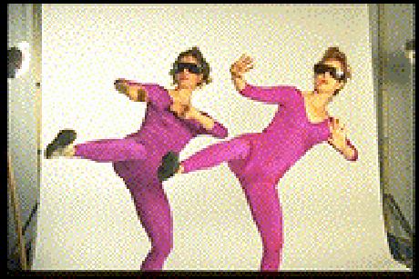 The original production tookover one year to develop and involved 11 collaborating artists, 2 performers, and 3 technician-performers. The set, a maze of interconnecting scaffolding pipes, weighed approximately 5 tons and took 6 days to assemble. It could be reassembled with great difficulty in changing configurations at each venue. Audience, performers, and technicians shared the set as simultaneous playground and seating environment.. Five 35mm projectors, one video projector, 24 lighting instruments, and six special effects including fiber optics provided an array of multimedia illusions.. An original jazz fusion score enhanced the dark erotic theme of the show. .The athletic choreography was augmented by the inclusion of a work by German Expressionist Mary Wigman.